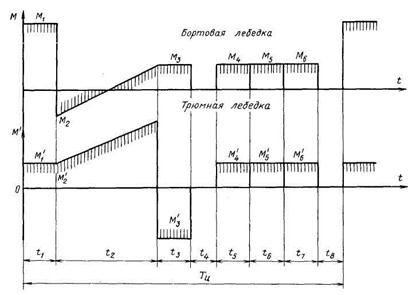 Рис. 13.6. Нагрузочная диаграмма электропривода при работе двух лебедок на один гак