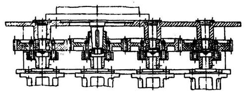 На рис. 13.26 представлен привод насосов, обслуживающих механизмы крана. Этот привод размещен в крышке масляного бака насосной станции. Он состоит из четырех вту-