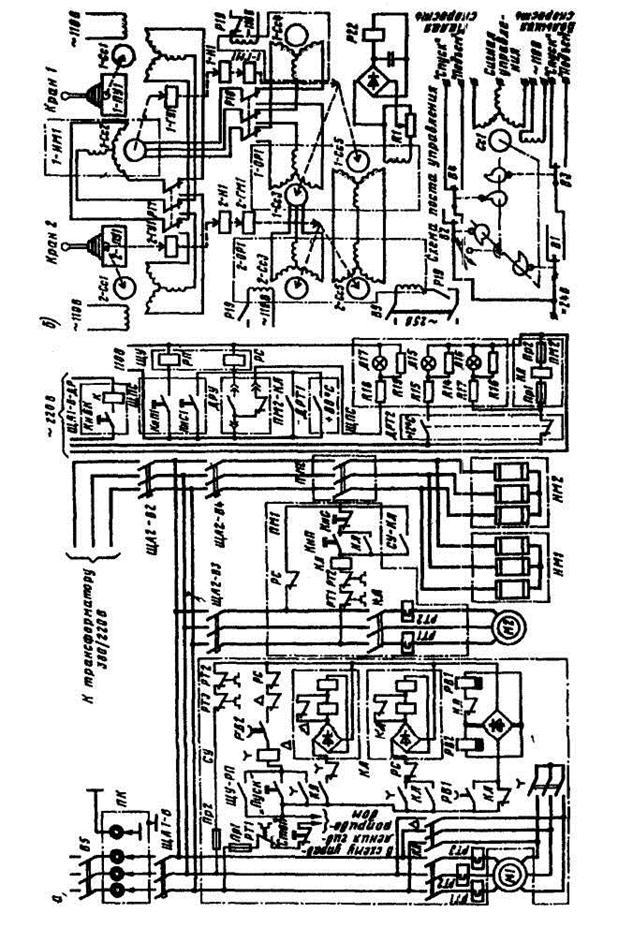 3. пуск и остановку электродвигателя 1-Ml при помощи кнопок КнП2 и КнС2 щита 2-ЩПС при работе крана в сдвоенном режиме.