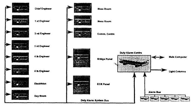 ния сигналов тревог в перечень сигналов тревоги и сообщении о них на мостик, главному механику, панелям кают механиков (от 1-го до 4-го), электромеханика, комнат отдыха, в кают-компанию и др. общественные помещения. При этом все сигналы отправляются в управляющий компьютер.