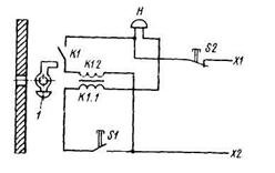 Звонок Н звонит до тех пор, пока не будет отпущена кнопка S1. К якорю прикрепле
