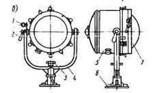 Рис. 17.6. Прожекторы морские: а - сигнальный типа МСПЛ-Л45/2;
