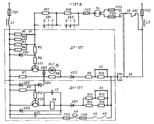 щью датчика тока ДТ-127. Дополнительное устройство ДУ-127 является общим для датчи