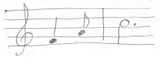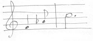 После пропевания мелодии, определения лада и расстояния между первой и третьей ступенями можно поставить в первом случае знак форте, а во втором – пьяно и спеть с такими динамическими оттенками. В нотной записи (минор) появился знак бемоль, который обозначает понижение звука на полтона и делает расстояние между первой и третьей ступенями меньше.