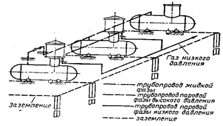 Резервуары соединяются между собой трубопроводами как по жидкой, так и по газообразной фазе и должны быть покрыты усиленной гидроизоляцией.