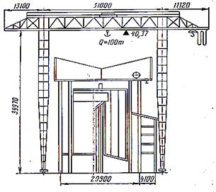 Высокая производительность позволяет применять козловой кран грузоподъемностью 100 т в качестве основного монтажного механизма на объектах при совмещенном строительстве и монтаже на крупных электростанциях, где требуется монтаж не менее трех котельных агрегатов производительностью 420, 500 и 640 т/ч, а также для монтажа крупных котельных агрегатов на открытых электростанциях (табл. 6.1, рис. 6.2).