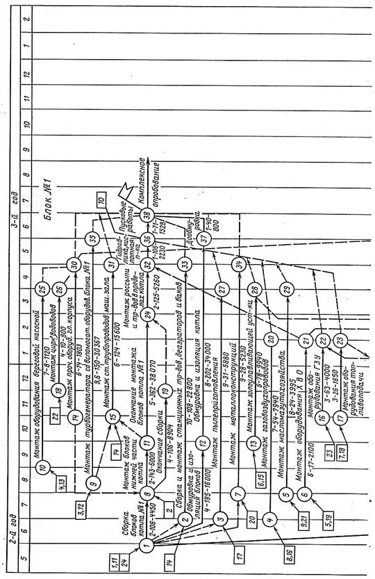 Общий сетевой график монтажа энергоблоков № 1 и 2 мощностью по 300 МВт электростанции 2400 МВт приведен на рис. 5.2. График монтажа оборудования блоков