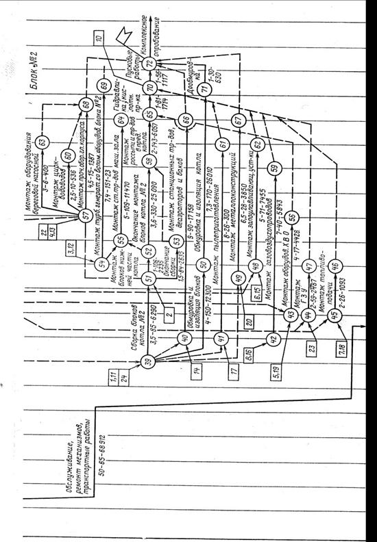 - локальные графики на монтаж оборудования отдельных цехов (котельного, машинного зала, ХВО, топливоподачи, мазутного хозяйства и др.) с числом событий 50-60.