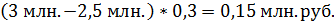 3) (2,7 млн. – 1,4 млн.) * 0,3 = 0,39 млн. руб. – потери.
