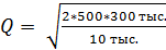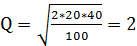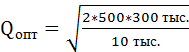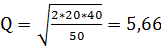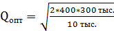 Q = (2 × 20 × 2000/0.1 × 5)1/2 = 400 ед.