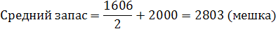 Максимальный запас = 1606 + 2000 = 3606(мешков)