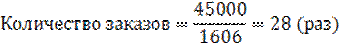 Количество заказов в течение года= 2000/400 = 5 раз в год.