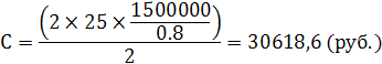 Рассчитать оптимальный размер заказа и требуемое количество заказов в течение года (средний остаток запасов на складе), если стоимость размещения одной партии заказа – 20 руб. Годовая потребность в сырье – 2000 ед. Затраты по хранению – 10% от цены приобретения. Цена штуки – 5 руб.