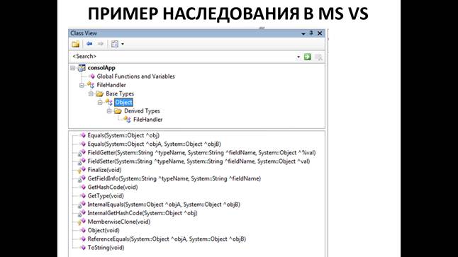 При наследовании в базовый класс относят то общее, что существует для его потомков, т.е. производных классов. Производные классы часто называют специализацией базового.