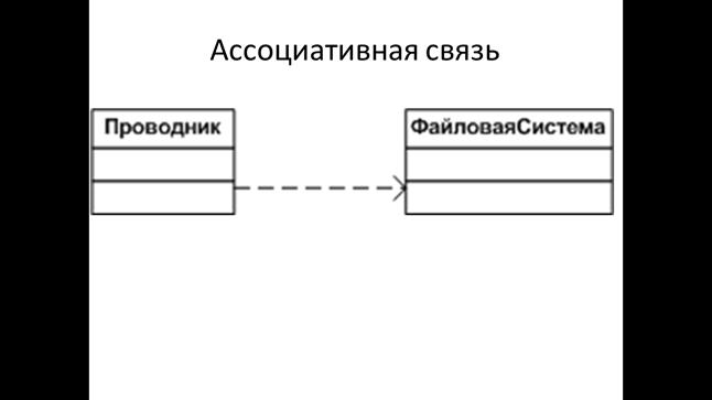 Отношение ассоциации (ассоциативная связь) – это отношение имеет место в тех случаях, когда методы одного класса используют свойства и методы другого класса.