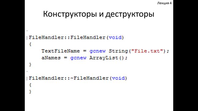Среди методов класса особую роль играют два типа методов: конструкторы и деструкторы.
