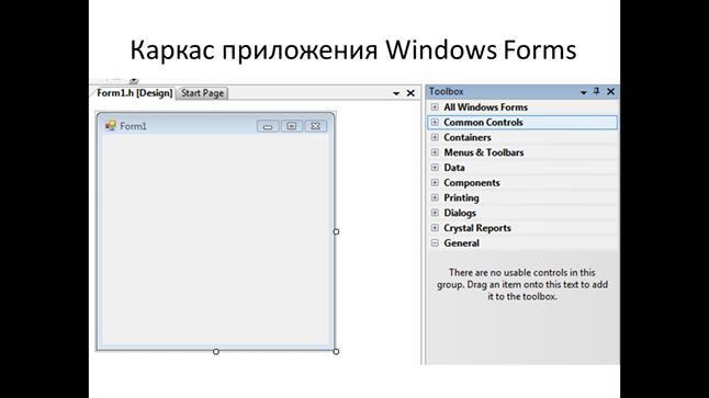 Современным подходом к разработке приложений для многозадачных систем с графическим интерфейсом является программирование использующее каркас приложения. Каркас, по сути является работающей программой в состав которой перед компиляцией может добавляться программный код. Программный код каркаса в приложениях для windows содержит средства для обработки потока сообщений, а также средства для работы графических элементов windows. В каркас могут добавляться экземпляры элементов управления, среда позволяет манипулировать свойствами и методами этих объектов.