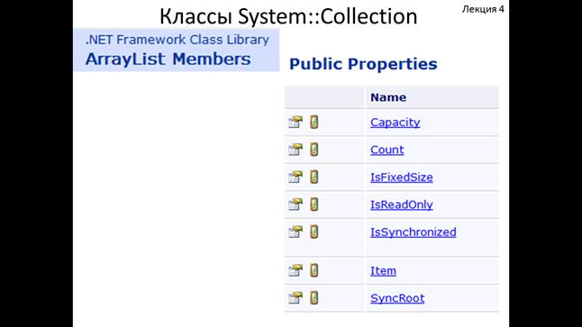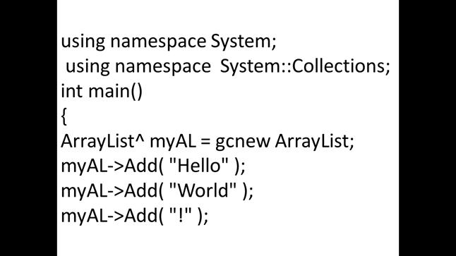 В библиотеке.Net классы коллекций доступны в пространстве имен system::collection.