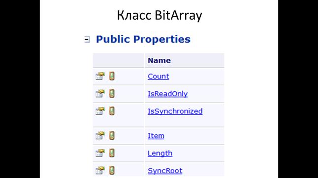 Класс BirArray дает возможность оперировать битами. В классе BirArray присутствует методы для выполнения логических операций над байтами.