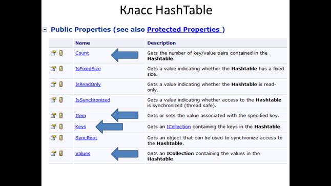 Свойство Values аналогично является набором значений элементов хеш-таблицы.
