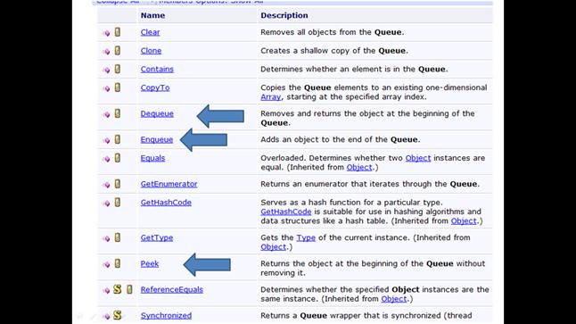 Метод Enqueue добавляет элемент в очередь. Предполагается, что элемент размещается в конце очереди и постепенно продвигается к началу, по мере того, как другие элементы из очереди исключаются.