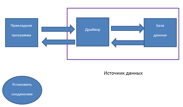 Драйвер и база данных образуют источник данных для программы. Источнику присваивается имя, что позволяет на программном уровне оперировать источниками как программными объектами.