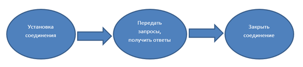 3) Прикладная программа вызывает функцию закрытия соединения, в результате которой освобождаются ресурсы, задействованные при обмене данными.