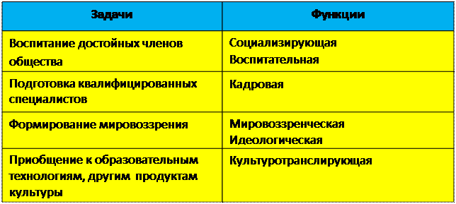 Ø демократизация образования (ликвидация неграмотности, массовое распространение среднего и высшего образования)