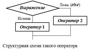 Если выражение не равно нулю (истина), то выполняется оператор 1, иначе – оператор 2. Операторы 1 и 2 могут быть простыми или составными (блоками).