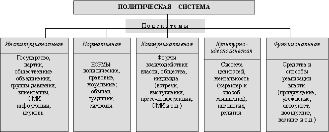 Сферы общественной жизни - подсистемы (экономическая, политическая, социальная, духовная).