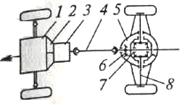 7 − дифференциал; 8 − полуоси; 9 − карданный шарнир;
