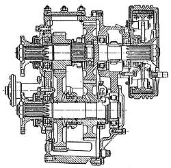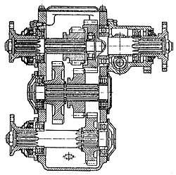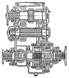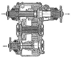 Эта передача выполняет также функции межколесного дифференциала. Передача применяется на некоторых моделях легковых автомобилей.