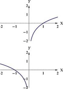 Рис. 14: Графики логарифмических функций. Первая строка: график функции y = log ax, слева a > 1, справа 0 < a < 1. Вторая строка: график функции y = log a (— x), слева a > 1, справа 0 < a < 1.