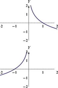 Рис. 13: Графики показательных функций. Слева: y = ax (0 < a < 1). Справа: y = ax (0 < a < 1) или y = a~x {a > 1)