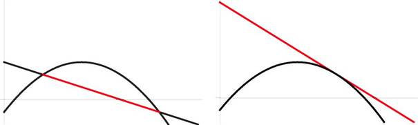 Рис. 3: Слева: график касательной, справа: график дифференциала