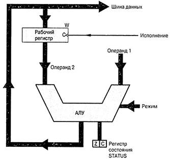 Связка АЛУ/рабочий регистр (аккумулятор) является "сердцем" любого микроконтроллера. Причем при использовании компьютера или микроконтроллера, нам совершенно не нужно досконально знать их внутреннее устройство.