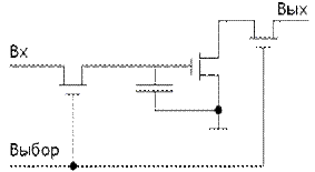 Ячейкой памяти является конденсатор в виде входной емкости МОП транзистора. Память осуществляется путем удержания заряда емкости, соответствующей логической единице в течение нескольких микросекунд. По истечении времени необходимо выполнить перезарядку конденсатора. Отсутствие заряда – логический 0.