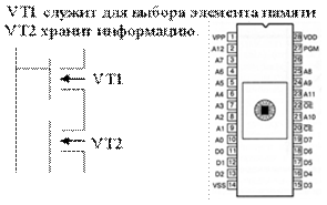 3. Стираемое ППЗУ или РПЗУ (репрограммируемые) – пользователь может запрограммировать такое ПЗУ несколько раз без ущерба для информации. Такие ПЗУ включаются в комплект МП систем, функции которых окончательно определяются изготовителем. Построение таких ПЗУ аналогично построению масочных ПЗУ. Его основу составляет МОП – транзисторы.