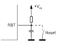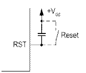 Для обеспечения выполнения программы с начального вектора и временной задержки запуска контроллера при включении питания, необходимой для установления режимов работы тактового генератора и других устройств, служит цепь начального запуска. В большинстве микроконтроллеров начальный запуск осуществляется удержанием на некоторое время нулевого уровня на входе RESET. Для части микроконтроллеров активный уровень RESET – высокий. Таймер задержки сброса работает от RC- генератора сторожевого таймера, независимого от основного тактового генератора микроконтроллера. В некоторых микроконтроллерах содержится внутренняя схема начальной установки, и они не требуют подключения каких- либо элементов к цепи сброса. Однако и в этом случае для запуска контроллера в процессе отладки вводится кнопка сброса.