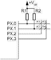 Резистор фиксирует потенциал на входе порта при разомкнутых контактах. Если используются линии порта с внутренними подтягивающими резисторами, то наличие внешнего резистора не обязательно. Такой простой способ подключения используется при небольшом числе кнопок или контактных датчиков.