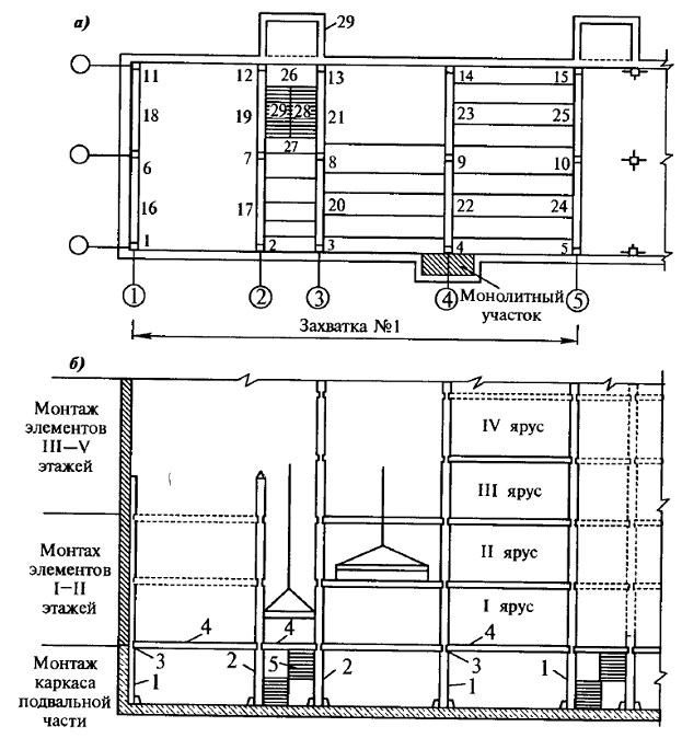 Рис. 29.4. Технологическая последовательность монтажа элементов встроенного каркаса: