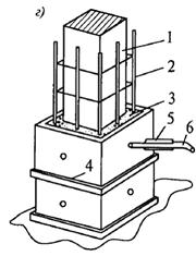 Рис. 29.8. Усиление столбов стальной обоймой (а), армокаркасами (б), сетками (в) и железобетонными обоймами (г):