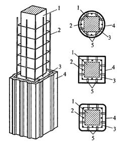 Рис. 29.9. Усиление столбов с использованием опалубки-облицовки: