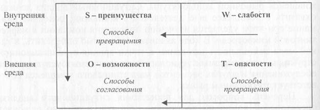 Использование методики SWOT-анализа позволяет определить основные причины и оценить предпосылки эффективности (либо неэффективности) ее деятельности, позиции компании на рынке и степень ее восприимчивости к факторам внешней среды. Методика SWOT-анализа включает оценки сильных (Strengths) и слабых (Weaknesses) сторон деятельности операторской компании (ее преимуществ и недостатков), а также возможностей (Opportunities) и опасностей (Threats) со стороны внешней среды (рис. 2.1).