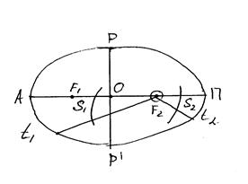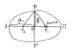 Спутники, летающие вокруг Земли, имеют эллиптическую орбиту. Эллипс- это геометрическое место точек, сумма расстояний от каждой из которых до двух точек, называемых фокусами, является величиной постоянной, равной 2а, где а- большая полуось эллипса.