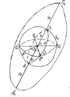 П- перицентр (проекция П0 на сферу),А-Апоцентр