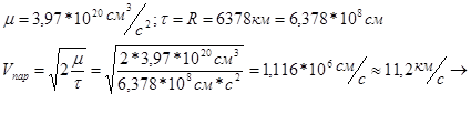 Параболическая скорость или скорость освобождения- это скорость выхода тела из сферы Земного притяжения. Тело, движущееся с параболической скоростью вокруг центрального тела, при отсутствии вблизи других притягивающих тел, будет неограниченно удаляться от центрального тела.