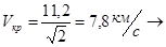 При скорости Vкр спутник движется вокруг притягивающего тела по круговой орбите. При этом сила притяжения равна центральной силе.