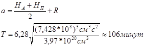 НА=1880км; НП=230км; μ=3,97*1020см3/с2;