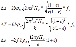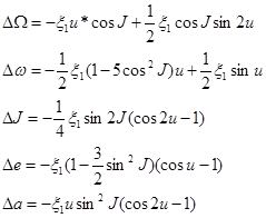 Изменения орбиты ИСЗ вследствие этого фактора, выражаются приближенными формулами: